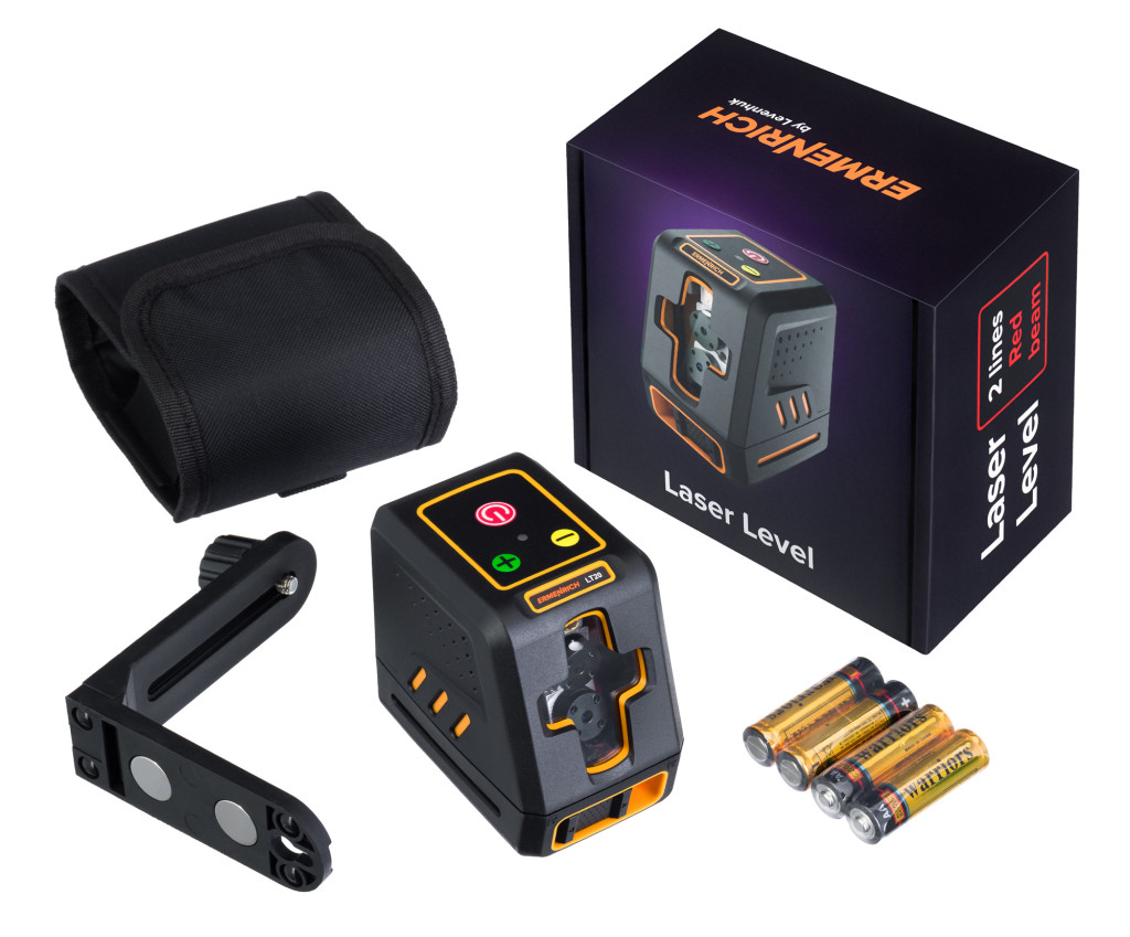 Az Ermenrich BASE LT20 vízszintes felületen is elhelyezhető, vagy szabványos állványra is felszerelhető. Dönthető fejjel ellátott állvány használatával a kívánt lézerbeállításnak megfelelően döntheti a szintezőt. Az eszköz porral és fröccsenő vízzel szemben védett, ami felújítási és építési környezetben különösen hasznos. A szintező szabványos elemekkel működik. 10 fényerőszint állítható be.