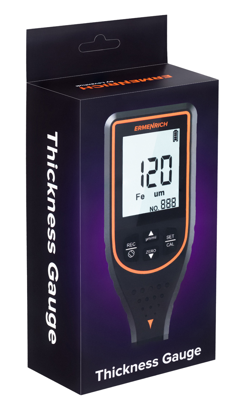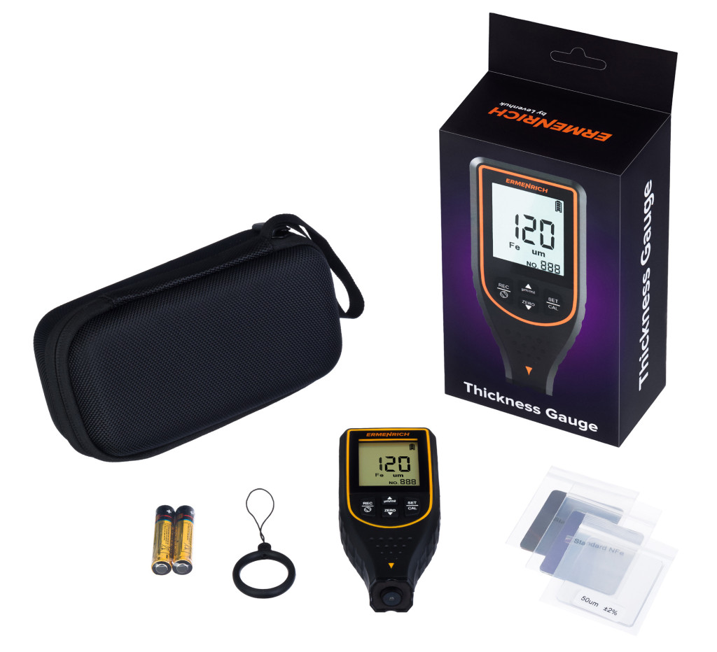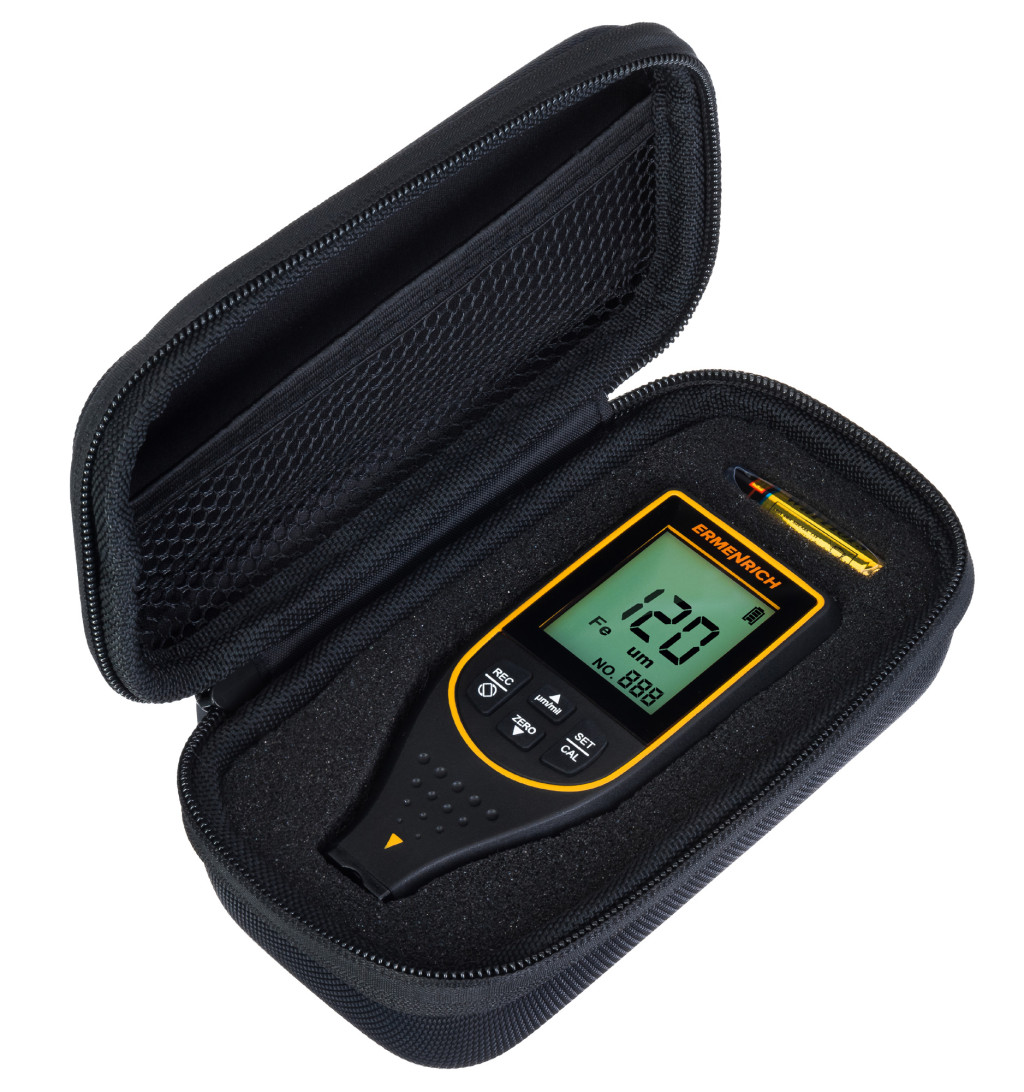 Az Ermenrich NT50 vastagságmérő a bevonatvastagság mérésére szolgáló vastagságmérő vas- és színesfémfelületekhez. Ez lehet festék, lakk, alapozó, töltőanyag vagy bármilyen egyéb típusú bevonat. Az érzékelőt csak a felületre kell helyezni, a mérési folyamat így nem károsítja a bevonatot.