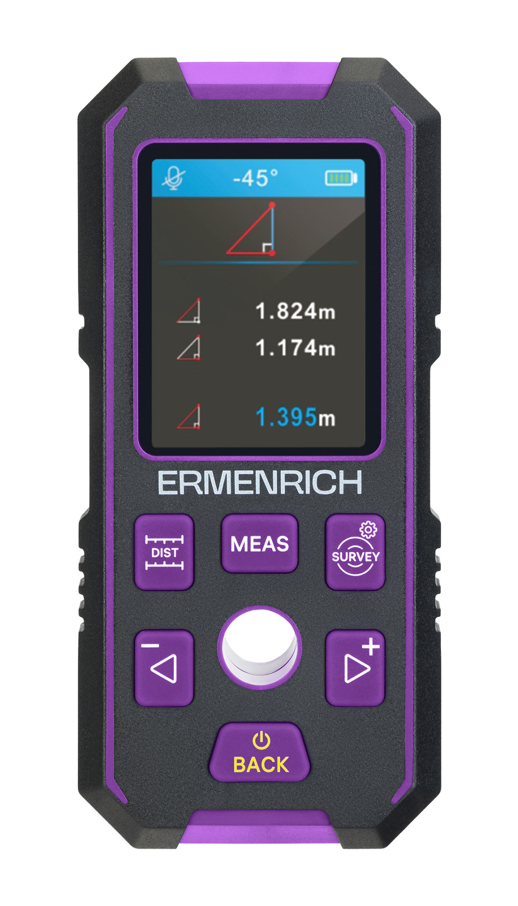 A lézeres mérőszalag módban a lineáris méretek (hosszúság, szélesség, magasság) 20 cm és 40 cm között mérhetők, ±1,5 mm-es pontossággal. A számoló módban a berendezés területet és térfogatot is mér, valamint képletek segítségével egyéb számításokat is elvégez. Egyszeri mérésre vagy szkennelő üzemmódra is beállítható. Az eredményt a készülék a beépített memóriába menti el. Digitális szintezőként az Ermenrich Ping SM90 −90° és +90° között tud szögeket mérni. A falszkennelő mód használatával megtalálhatók a falakban rejlő, feszültség alatt lévő vezetékek, vasat tartalmazó és nem tartalmazó fémtárgyak, fa szegecsek.