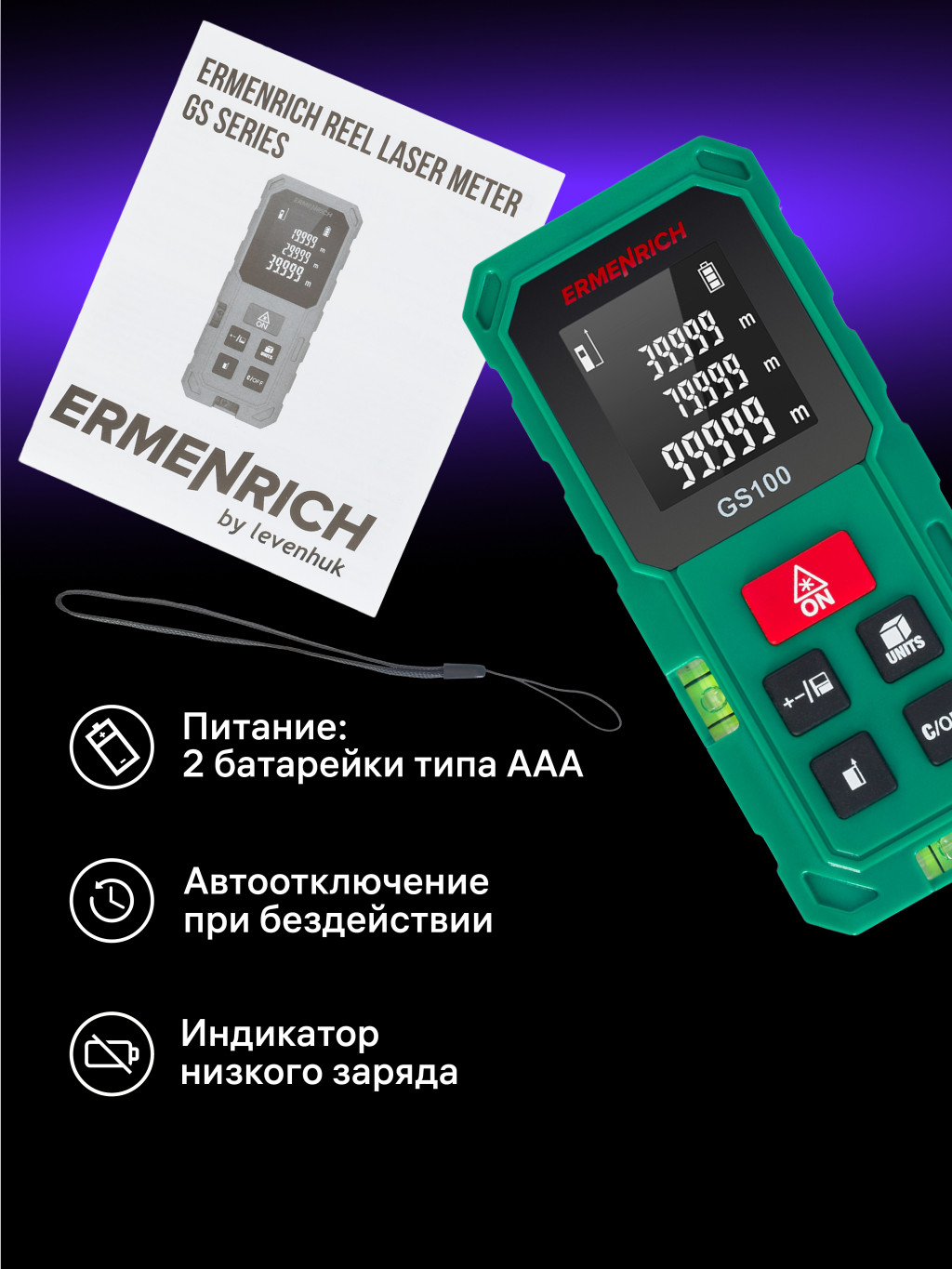 Az Ermenrich Reel PLUS GS100 egy modern lézeres mérő távolságok, térfogatok és területek pontos és kényelmes méréséhez. A Pitagorasz-tételt alkalmazó közvetett számítási funkció lehetővé teszi a távolság kiszámítását akkor is, ha akadály van a lézer útjában, vagy ha a készüléket nem lehet a kívánt pozícióban elhelyezni. Ez a funkció további mérések segítségével maximális pontossággal kiszámítja a kívánt távolságot.
