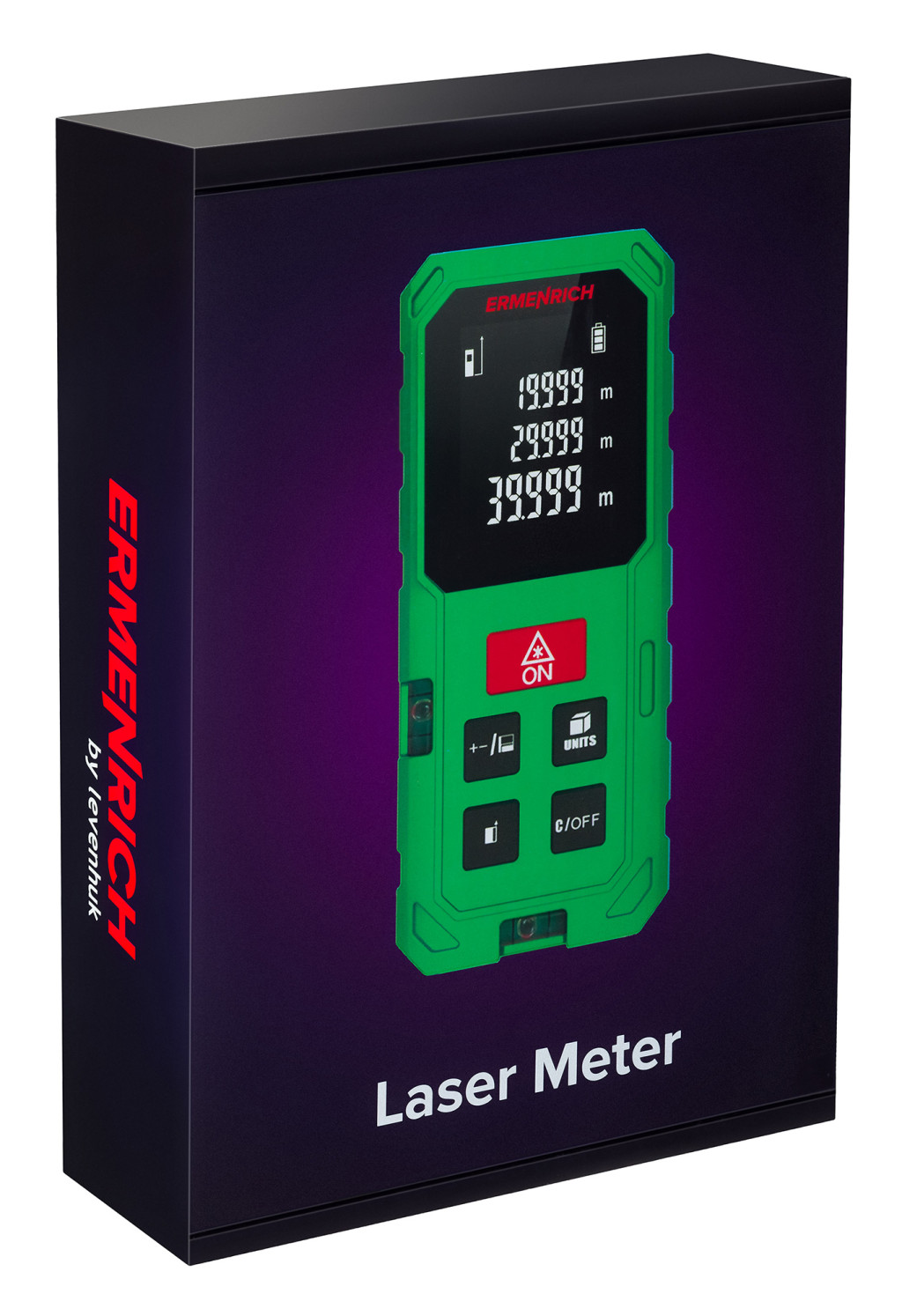 Az Ermenrich Reel PLUS GS80 lézeres mérőt építési vagy javítási munkák során végzett mérésekhez tervezték. Funkcionalitása az egyik fő előnye. Nemcsak távolságok és tárgyak lineáris méreteinek meghatározását teszi lehetővé, hanem a terület és a térfogat kiszámítását is. A Pitagorasz-tétel funkció segít kiszámítani két pont közötti távolságot közvetett mérések segítségével. A két vízszintes buborékos vízmérték lehetővé teszi a készülék vízszintes elhelyezését, hogy a mérések a lehető legpontosabbak legyenek.