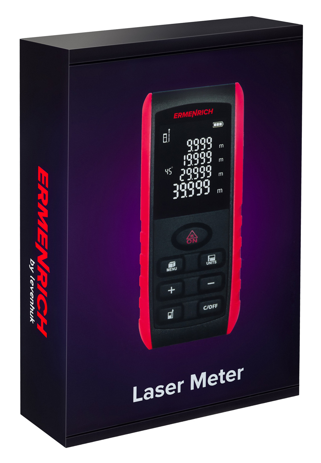 Az Ermenrich Reel PRO GE60 lézeres mérő lehetővé teszi a pontos távolságmérést 0,05 és 60 méter közötti tartományban, továbbá megmérheti vele helyiségek és objektumok szögeit, területét és térfogatát. A műszer egyik fontos előnye a Pitagorasz-tétel funkció: Ha a mérőműszert nem lehet a kívánt pozícióba helyezni, vagy a lézer útjába akadály kerül, elegendő két további mérést végezni, amelyekből a mérőműszer kiszámítja a távolságot.