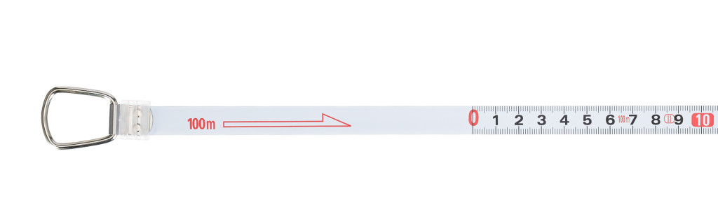 - Földmérő mérőszalag akár 100 méteres távolságméréshez