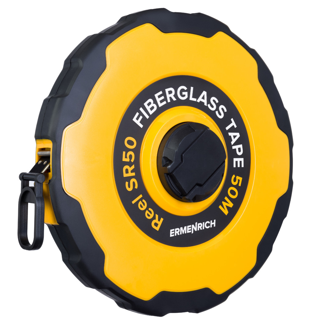 Az Ermenrich Reel SR50 mérőszalag akár 50 méterig mér. Az üvegszálas szalag kettős skálával rendelkezik, erős ABS műanyagból készült lemezszerű tokban található. A szalag nagyméretű és könnyen használható véghoroggal rendelkezik. A szalag feltekeréséhez orsófogantyú áll rendelkezésre. Összecsukható kialakításának köszönhetően lehajtható, amikor nincs rá szüksége.