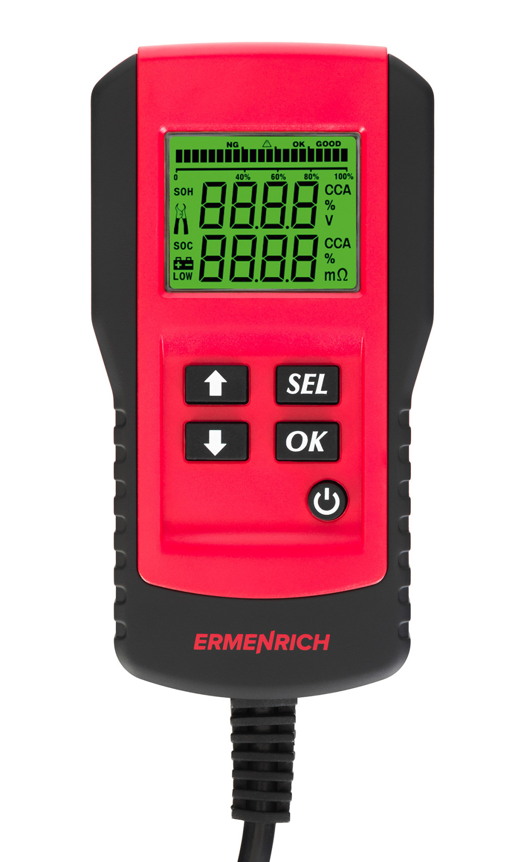 Az Ermenrich Zing AL45 akkumulátor-tesztelő egy intuitív eszköz, amellyel gyorsan ellenőrizheti az autóakkumulátor vagy a szünetmentes tápegység (UPS) állapotát. A tesztelő két terminállal csatlakozik az anódhoz és a katódhoz. A tesztelő töltése is így történik – nincs szükség más tápegységre.