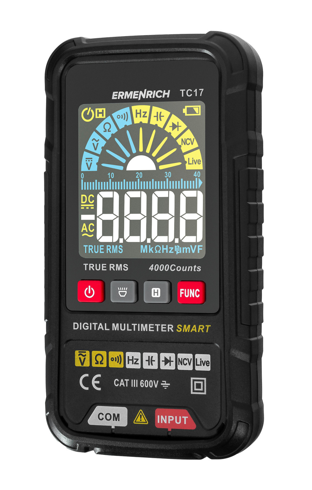 Az Ermenrich Zing TC17 digitális multiméter egy pontos (True RMS) és kompakt mérőeszköz szakemberek és ezermesterek számára. Alkalmas lakások, vidéki házak, ipari létesítmények, irodák és autók elektromos hálózatainak diagnosztikájára, valamint elektromos eszközök hibaelhárítására. A multiméter elfér a zsebében, így nagyobb területen végzett munka esetén is kényelmesen magával viheti.