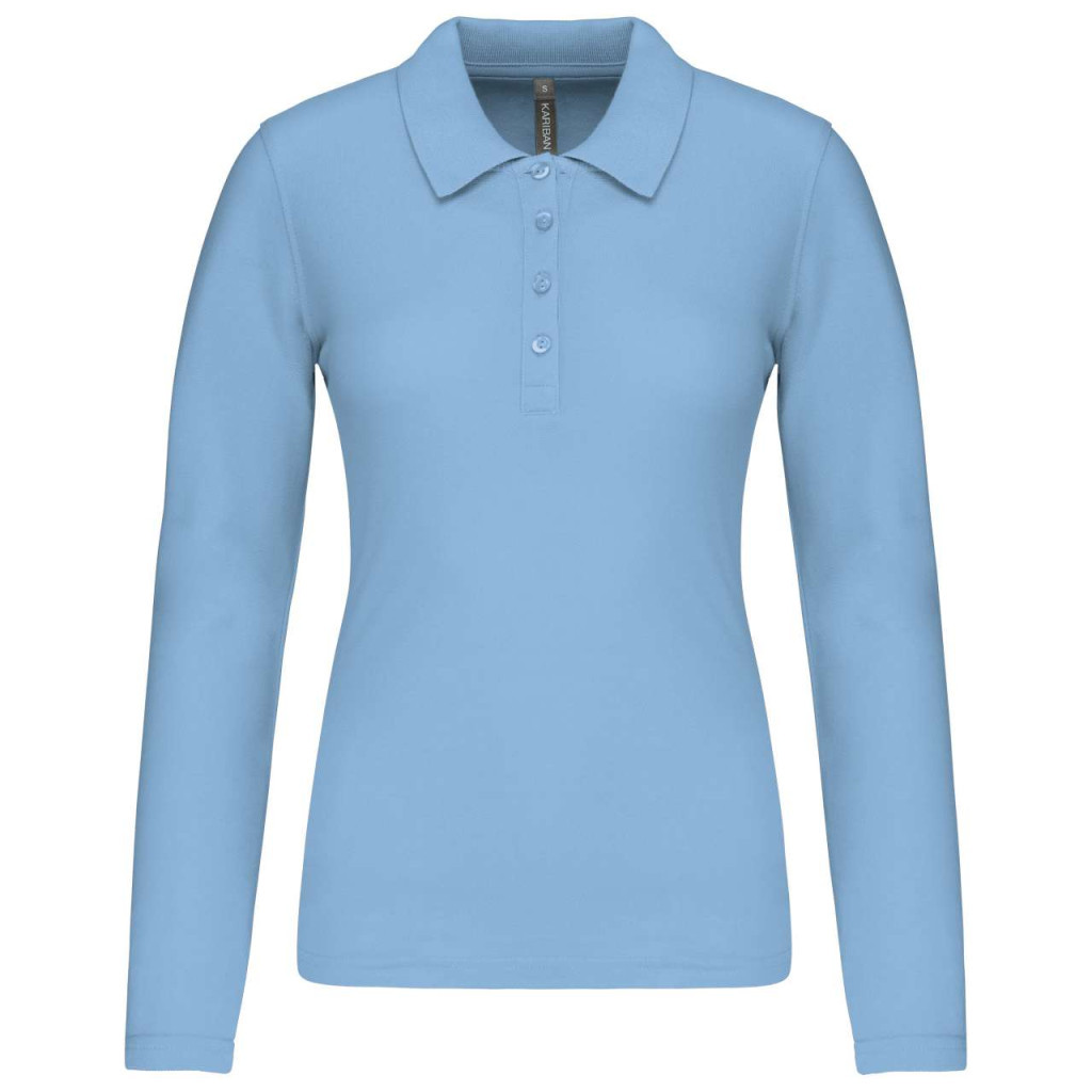 Kariban KA257 galléros hosszú ujjú női póló - sky blue szín