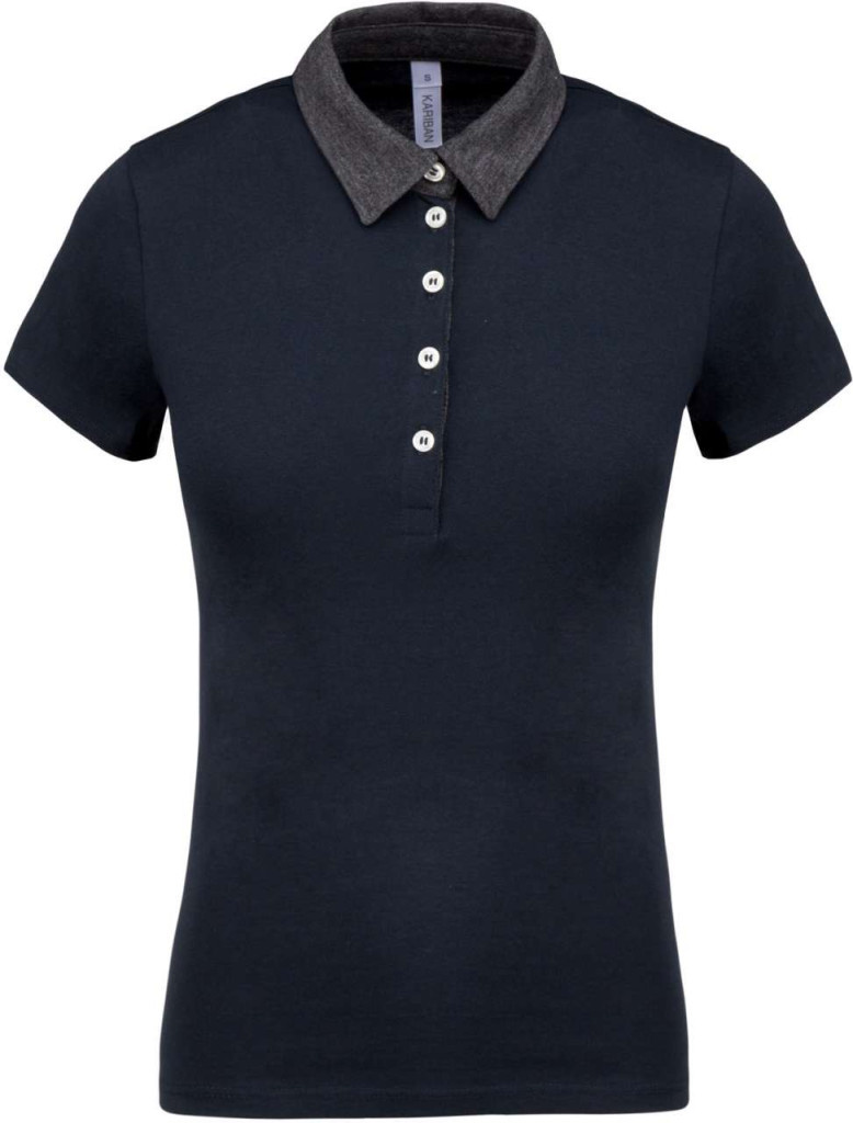 Kariban KA261 kéttónusú galléros női póló - navy/dark grey heather szín