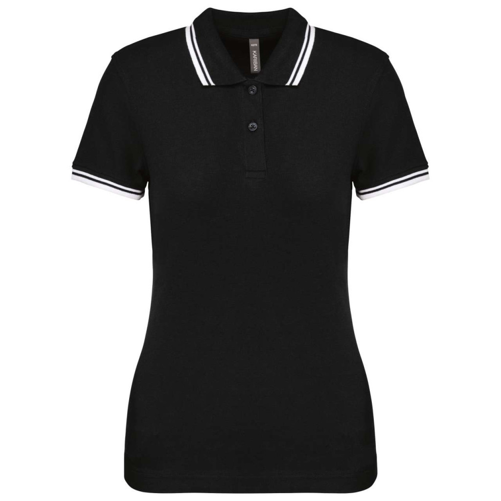 Kariban KA273 slimfit női galléros póló - black/white szín