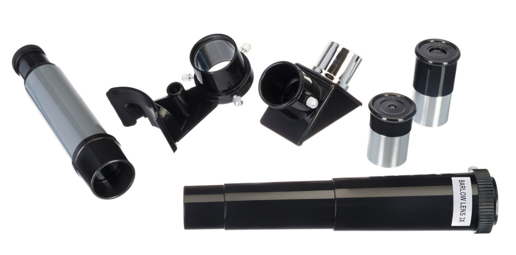 A készletben minden szükséges optikai tartozék megtalálható, így egy Barlow-lencse és egy diagonális tükör is.