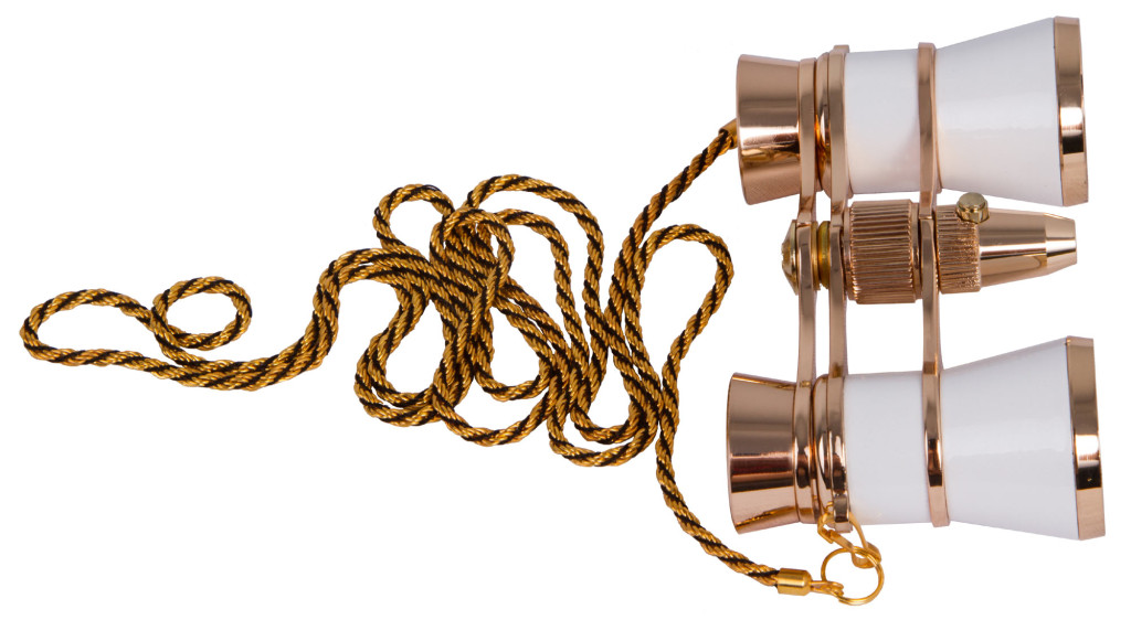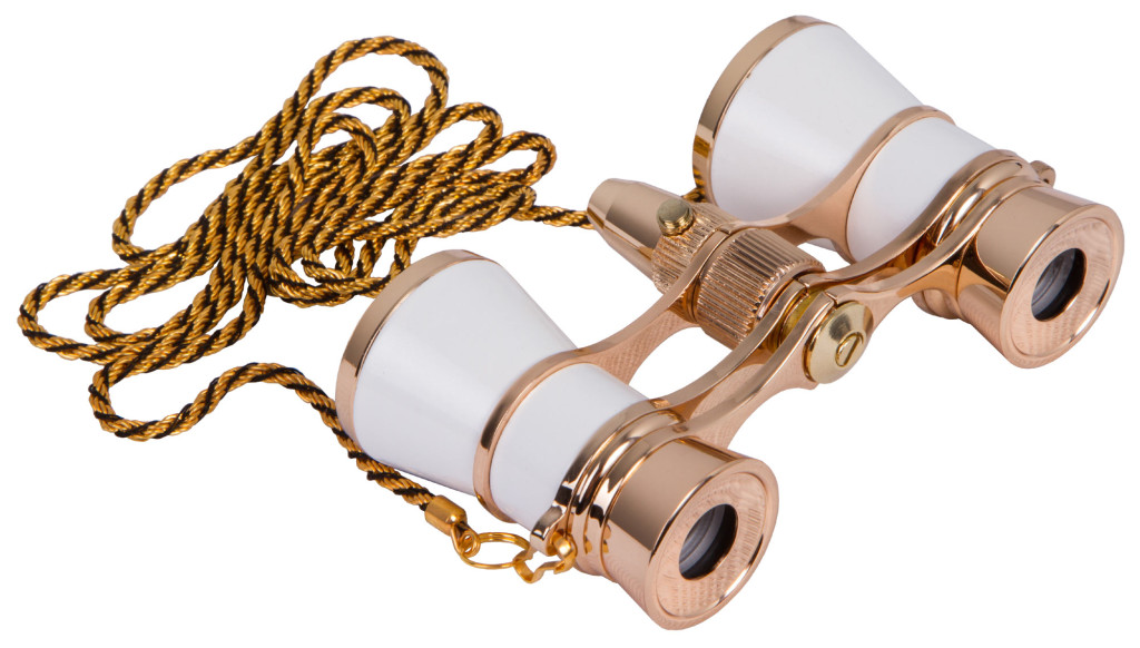 Levenhuk Broadway 325F termékcsalád – elegáns színházi kétszemes látcső LED-világítással A kétszemes távcsőhöz egy vékony fémlánc tartozik. Mindegyik modellhez tartozik egy puha tárolótok és egy tisztítókendő az optikai elemekhez. A csomagolás színházi témájú külsőt kapott.