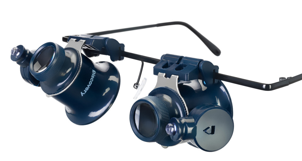 A lencsék mellett LED-ek találhatók: a világítás rendkívül erős és egyenletes megvilágítást biztosít, akár teljes sötétségben is dolgozhat. A megvilágítás szöge állítható. Elemmel működik.