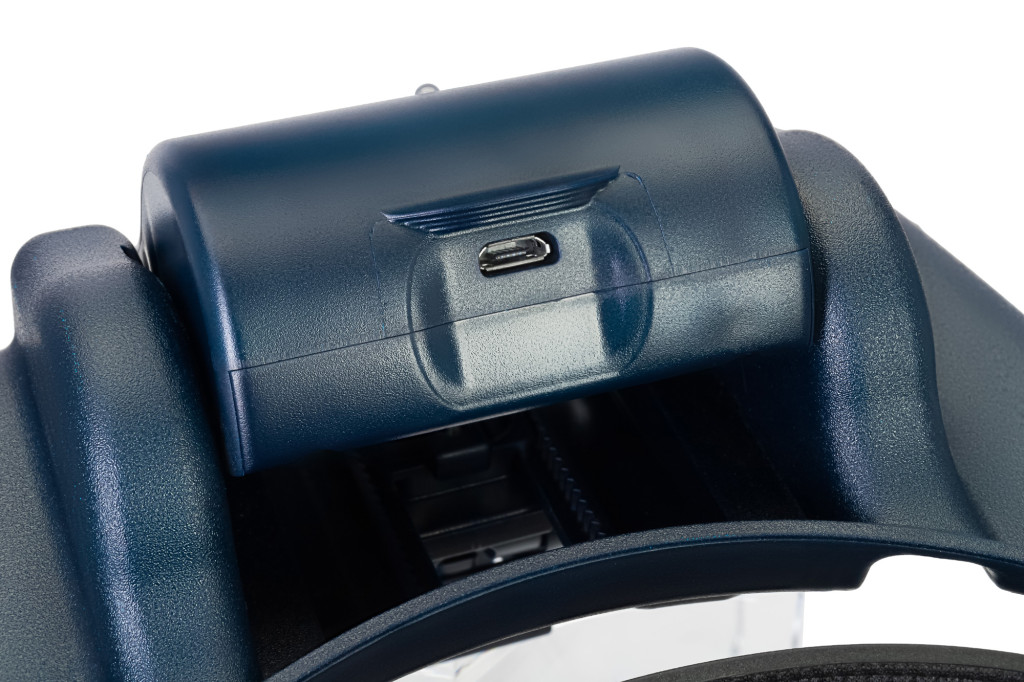 A nagyító méretre állítható fejpánttal rögzíthető a fejen. Újratölthető elemmel működő LED-világítás áll rendelkezésre, amely micro-USB – USB kábellel tölthető fel. A LED fényereje állítható.