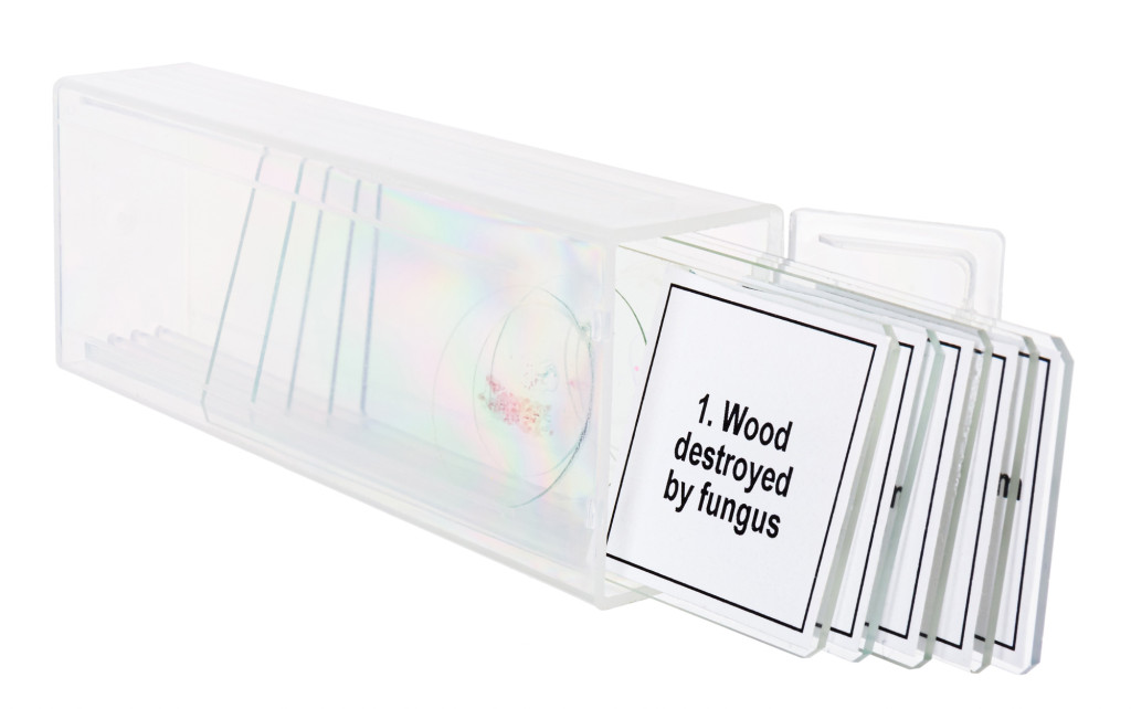 A Levenhuk Discovery Prof DPS 5 mikropreparátum mintakészlet. A „Mutációk” átlátszó mintákat tartalmazó, öt darab tárgylemezből álló sorozat, amelyet mikroszkóppal elvégezhető, fejlett kutatásokhoz állítottunk össze. Többek között állati és növényi szövetminták tartoznak ide, bemutatva az élőlények örökletes felépítésében bizonyos külső tényezők hatására bekövetkező változásokat is.