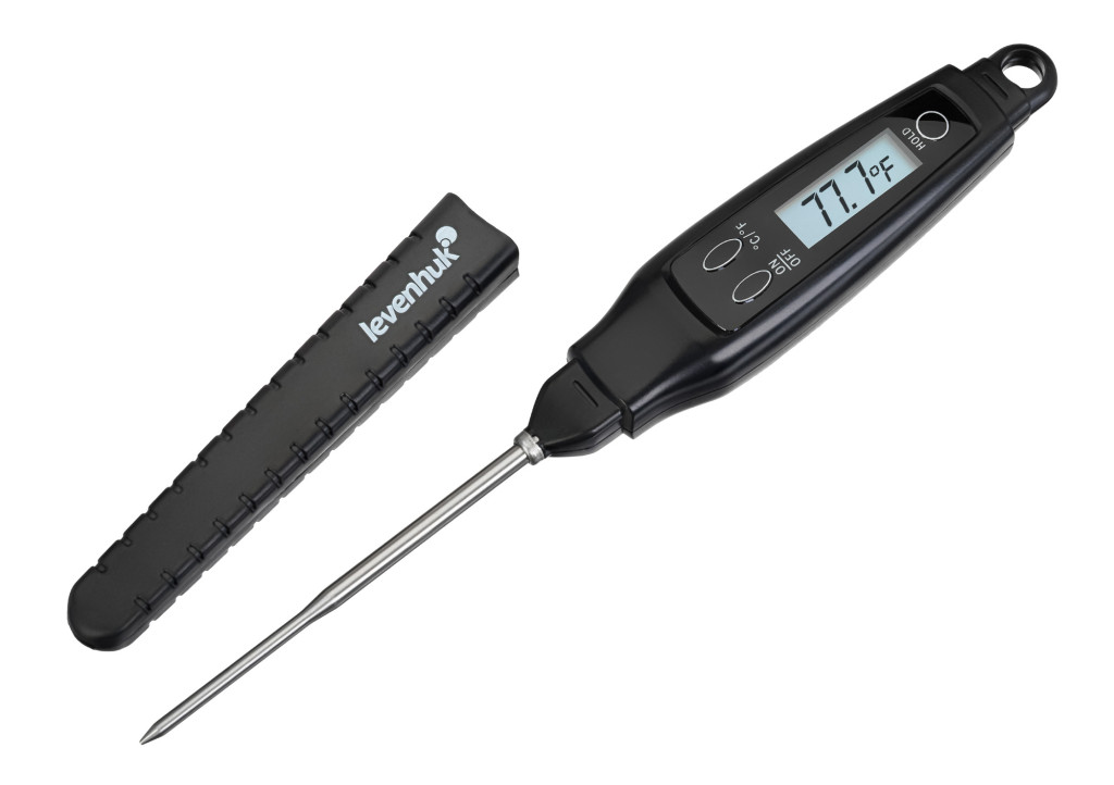 A Levenhuk F10 ételhőmérő egy digitális hőszonda, amely segíti a különböző ételek elkészítését. Gyorsan ellenőrizheti a termékek hőmérsékletét, hogy biztosan megfelelő módon legyenek elkészítve. Ez különösen húsok esetén fontos, azonban segítséget jelent a szószok és sült ételek elkészítésénél is. A hőszonda hasznos a bébiételek és számos egyéb termék hőmérsékletének ellenőrzéséhez.