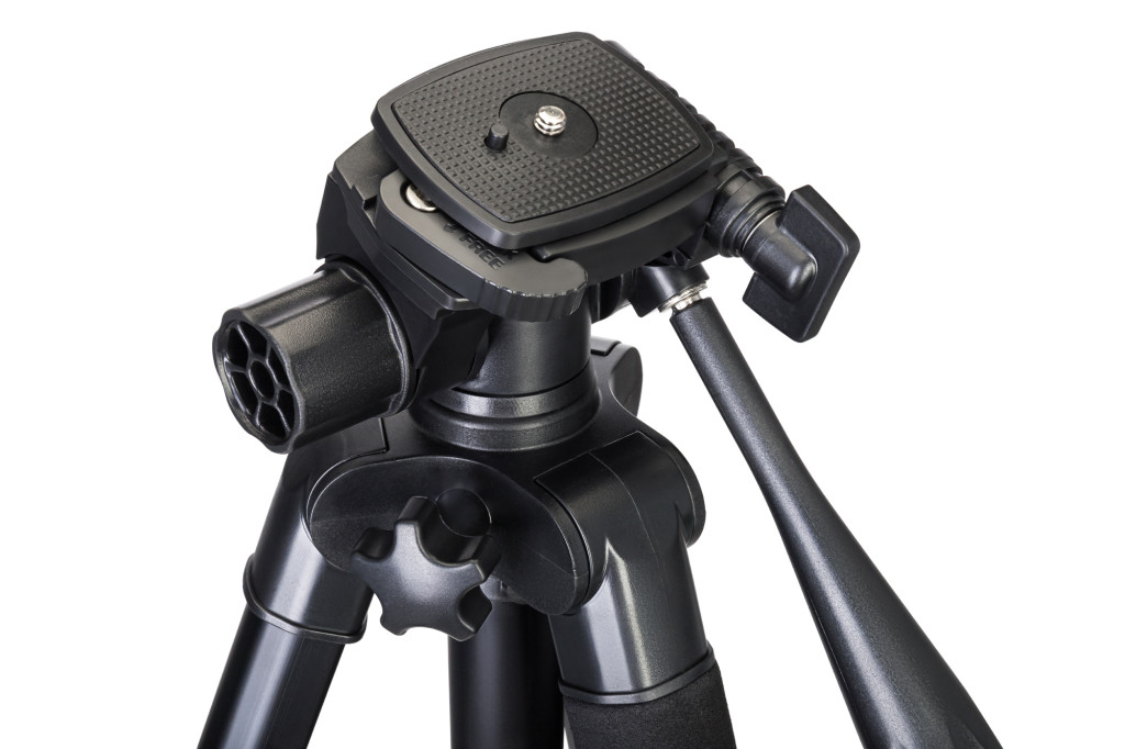 A fejrészen egy platform található, amely 90°-ig billenthető. A fejrész ezenfelül 360°-ban forgatható, valamint felemelhető, illetve leereszthető. A háromlábú állvány összes tengelyén rögzítőgombok találhatók. A szabványos 1/4" menetnek köszönhetően csaknem minden korszerű készülék felszerelhető rá. Felhívjuk szíves figyelmét, hogy bizonyos eszközök esetében a felszereléshez adapter (nem része a készletnek) kellhet.