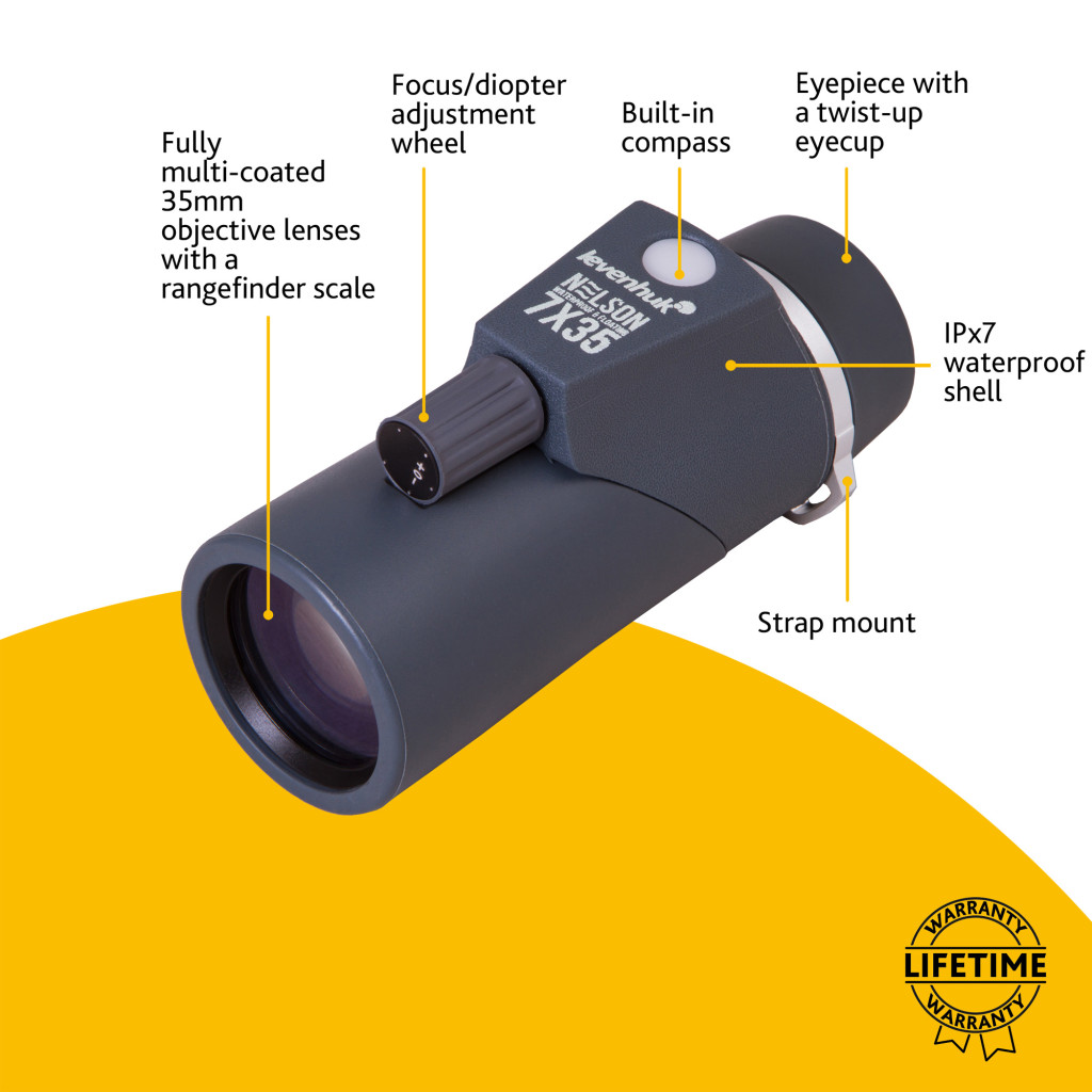 Az egyszemes távcső 7x-es nagyításra képes, segítségével a távoli objektumok részletei is jól láthatóvá válnak. A közelfókusz csupán 3 méter. Az optikai elemek BaK-4 típusú üvegből készültek. A teljesen és több rétegben bevonatolt lencsék fényes, nagy felbontású képeket hoznak létre. A vízálló műanyag burkolat nitrogéngázzal van megtöltve, amely megakadályozza a lencsék bepárásodását.
