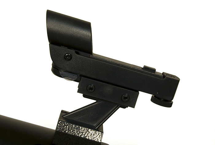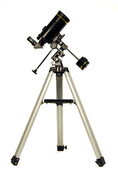 A teleszkóp alumínium tubusa egy ekvatoriális állványra van felszerelve, és