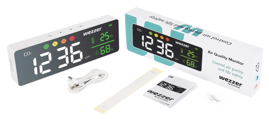 A szén-dioxid-riasztásoknak köszönhetően mindig tudni fogja, hogy mikor jött el az ideje, hogy kiszellőztesse a helyiséget. Azt is megállapíthatja, hogy melyik helyiségben lépi túl leggyakrabban a CO₂-szint a határértéket, hogy néhány szobanövénnyel növelhesse a helyiség levegőjének minőségét. A Levenhuk Wezzer Air MC50 érzékelő rendelkezik továbbá mosolyfejekkel jelölt komfortfokozat-skálával, hőmérővel és páratartalom-mérővel is. Ez egy nagyszerű módja annak, hogy szabályozza a mikroklímát otthonában, az osztályteremben vagy az irodában.