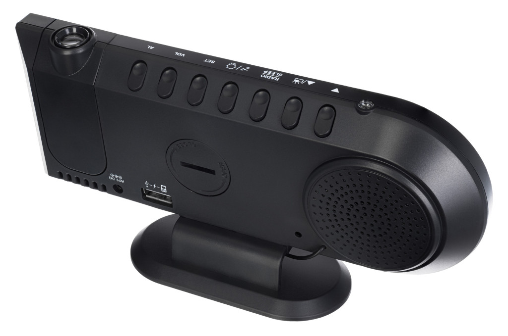 FM-rádió, Kivetítő: fényerő-szabályozás (3 szint), USB-port, automatikus kikapcsolási funkció, hangerőkapcsoló |