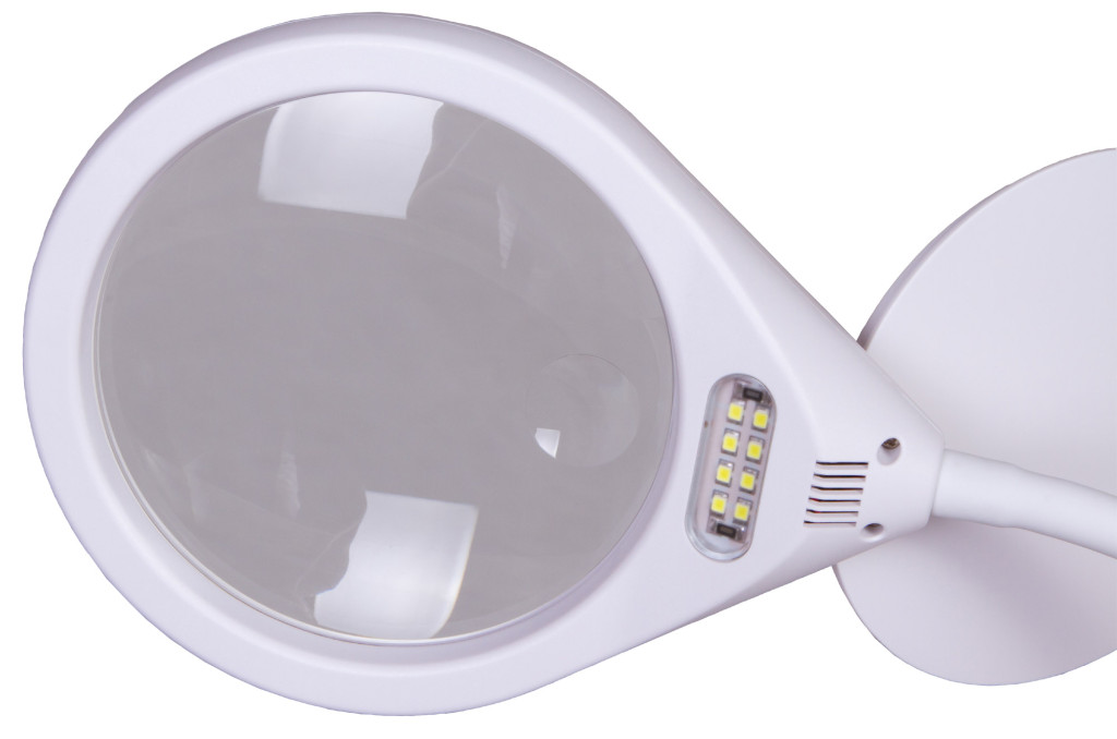 A nagyító lehetővé teszi a nagy területtel való munkavégzést és kétféle nagyítást biztosít. Közvetlenül a lencsék mellett van világítás, ami 8 világos LED-fényből áll. A világítás fényereje állítható. A világítást egy váltóáramú tápforrás biztosítja.