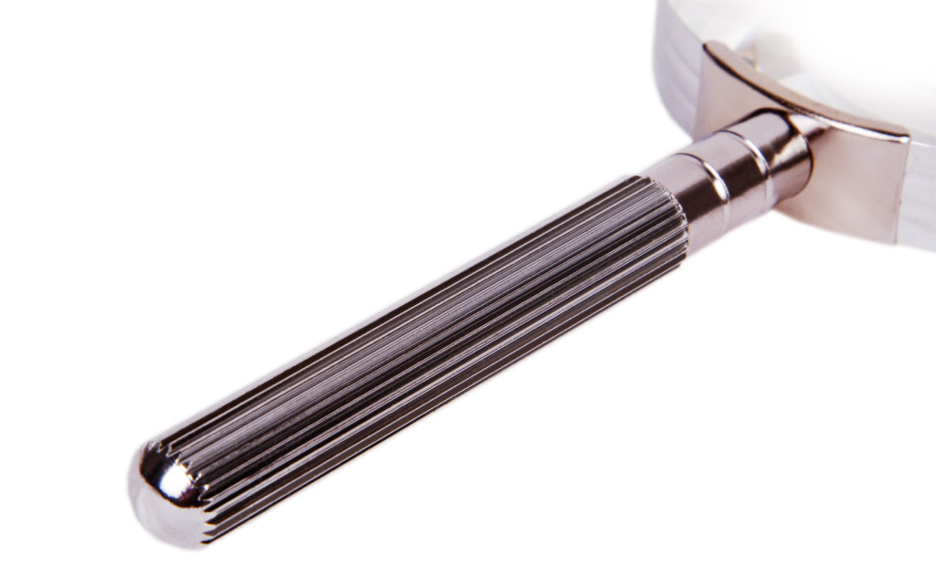 Ez a masszív nagyító ellenáll az ütéseknek. Fém nyele kényelmes és megbízható fogást biztosít.