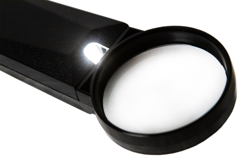 A Levenhuk Zeno Handy ZH31 nagyító fényforrással van ellátva: segít a rossz fényviszonyok közötti munkavégzésben. A lámpa kapcsolója a nyélen található, a helyzete pedig ujjal könnyen módosítható. Ez a nagyító tökéletes apró tárgyak tanulmányozásához vagy kisbetűk kiolvasásához.