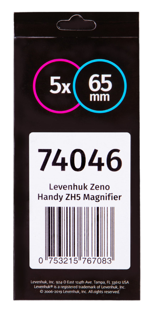A Levenhuk Zeno Handy ZH5 nagyító egy klasszikus kézi nagyító kis tárgyak tanulmányozásához. Megfelelő vázlatok és kisbetűs szövegek olvasásához, bútor vagy szövet hibáinak vizsgálatához és apró tárgyakkal való munkához. Tökéletes segítség fényképek vagy illusztrációk albumban való nézegetésekor, illetve ékszerek részleteinek és térképek tanulmányozásakor. A nagy lencseátmérő lehetővé teszi egyszerre széles terület belátását.