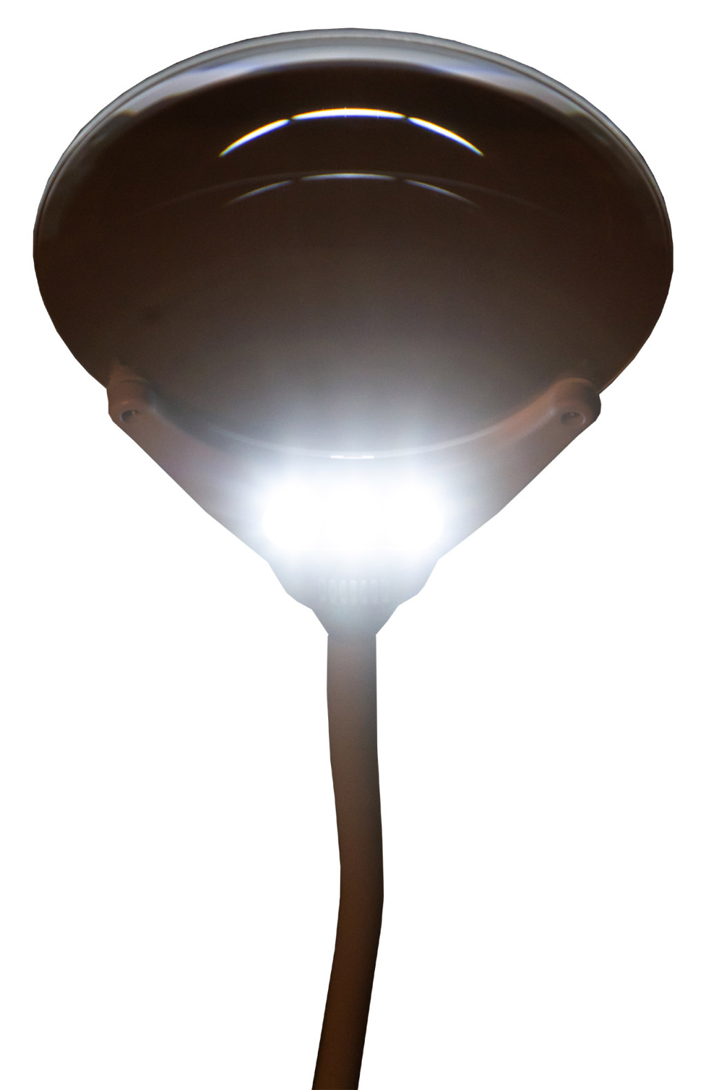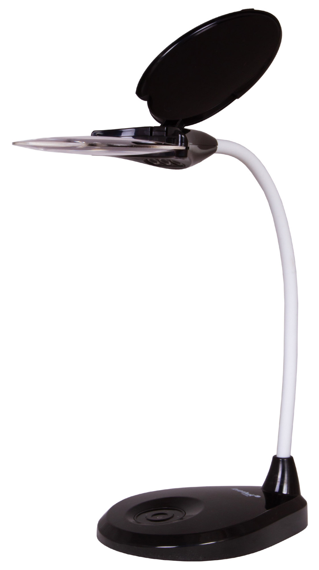 A nagyító lencsét hajlékony szár tartja a széles, erős talpazaton. A lencse anyaga optikai polimerüveg és nagyítása kétszeres. Mellette van az erős lámpa, amely gondoskodik a lencse alatti munkafelület egyenletes megvilágításáról. A lámpa kapcsolója a talpazaton van.