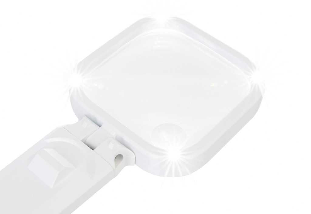 A nagyító minden optikai eleme optikai polimerüvegből készült. A nagyító a kézben tartva rendkívül könnyű. A lencse éles képet biztosít, elmosódások és torzítások nélkül. Dőlésszöge állítható. A lencse mellett egy LED-lámpa található. A fényerősség a vázon található kapcsolóval állítható. A lámpa működtetéséhez elem szükséges (nem része a csomagnak).