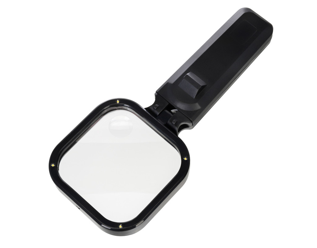 A nagyító minden optikai eleme optikai polimerüvegből készült. A nagyító a kézben tartva rendkívül könnyű. A lencse éles képet biztosít, elmosódások és torzítások nélkül. Dőlésszöge állítható. A lencse mellett egy LED-lámpa található. A fényerősség a vázon található kapcsolóval állítható. A lámpa működtetéséhez elem szükséges (nem része a csomagnak).