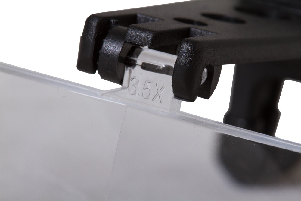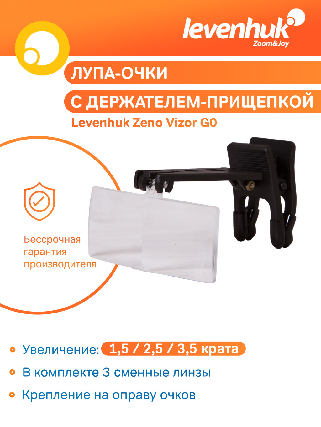 A Levenhuk Zeno Vizor G0 nagyítóüvegek alapvető fontosságúak hosszú ideig tartó, finom nyomatokkal vagy kis tárgyakkal végzett munkához. A nagyító erősen rögzül a szemüvegkeretre, és lehetővé teszi, hogy a látómezőt mindkét szemmel figyelhesd. A nagyítóüvegek cserélhető lencsékkel vannak ellátva, amelyek nagyítása 1,5x és 3,5x közötti, és egy csíptetővel rögzíthetők.