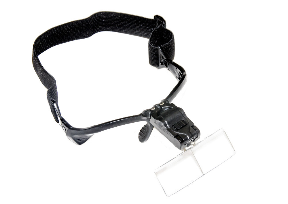 - Kétszemes, kerettel rendelkező nagyító extra fejpánttal