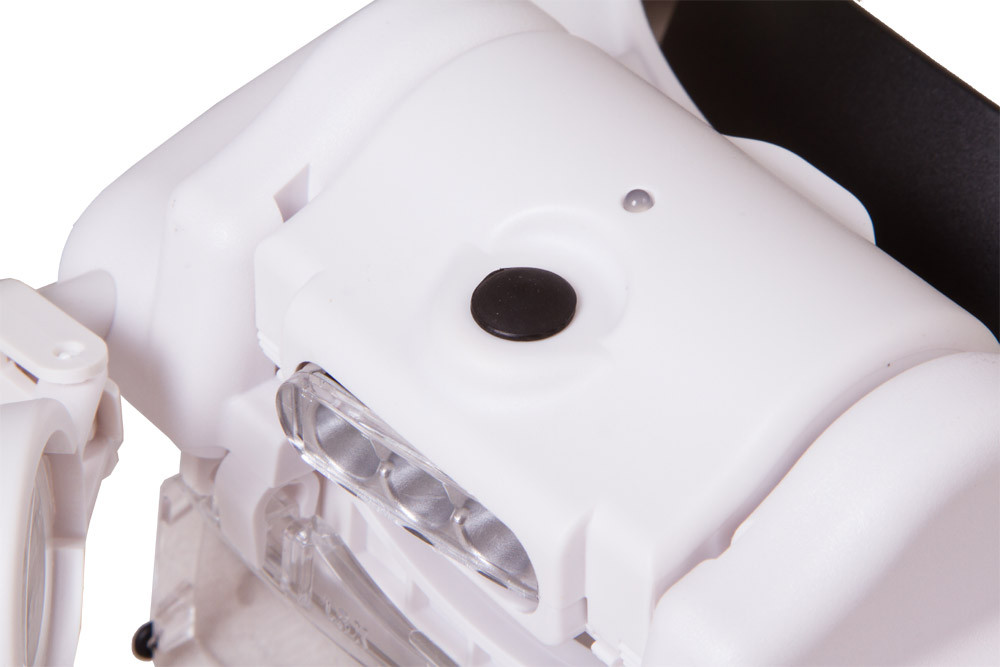 lehajtható lencse a jobb szemnél, állítható világítás-fényerő |