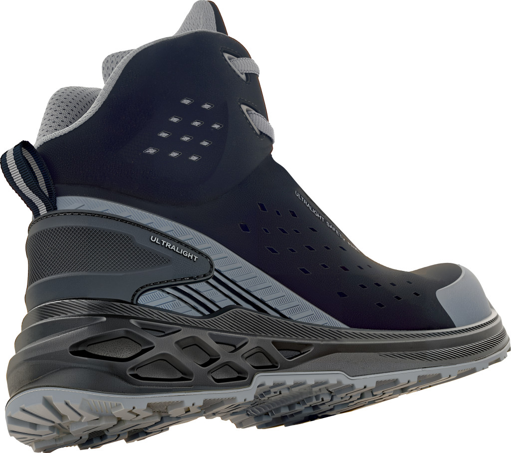A talp anyaga dupla sűrűségű PU, mely antisztatikus, csúszásmentes és ellenáll az olajoknak, valamint beépített energiaelnyelő sarokkal rendelkezik.
