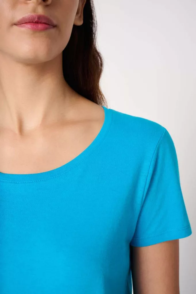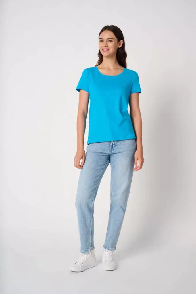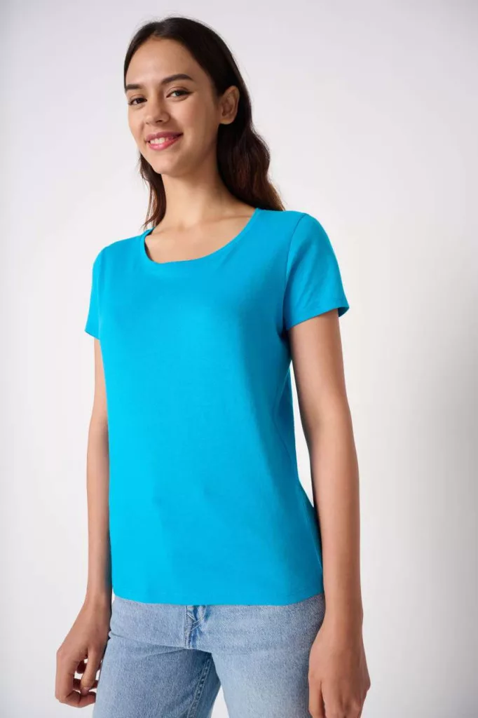 1×1 bordázott, kerek nyakkivágás dupla tűzéssel