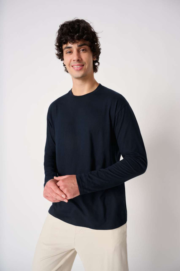 1×1 bordázott, kerek nyakkivágás dupla tűzéssel