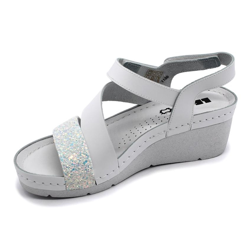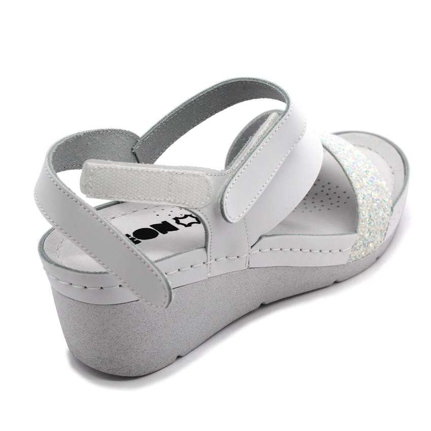 Dekoratív női bőr szandál, műanyag talppal. A talpbetét puha, zselés, bőr. Ajánlott minden napos utcai használatra, könnyű nyári sétára ( több órás gyaloglás után sem fárad el a láb ).