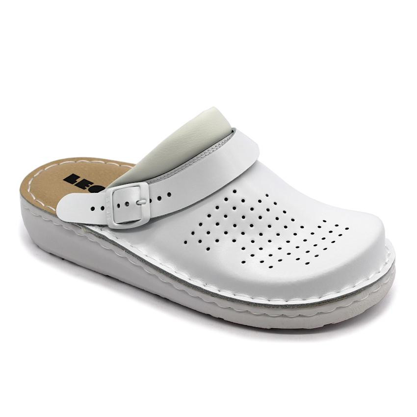 Női bőr klumpa, műanyag csúszásgátlós talppal. A felsőrész bemeneti nyílásánál, szivacsos szegő található, a komfortosabb érzetért. A szíj hátrahúzható a sarokhoz, így szandálnak is használható. A talpbetét puha, zselés bőr. Ez a modell szélesebb illetve magasabb lábfejjel rendelkező hölgyeknek ajánlott mindennapos utcai használatra, otthonra vagy munkahelyre ( több órás, szaladgálós munka alatt sem fárad el a láb ). Ez a termék rendelkezik munkavédelmi bevizsgálással.