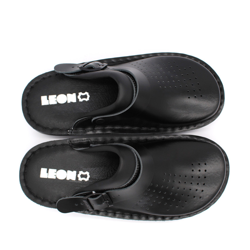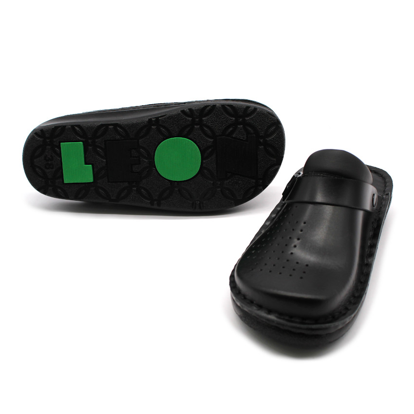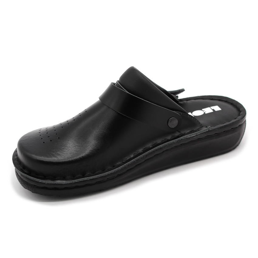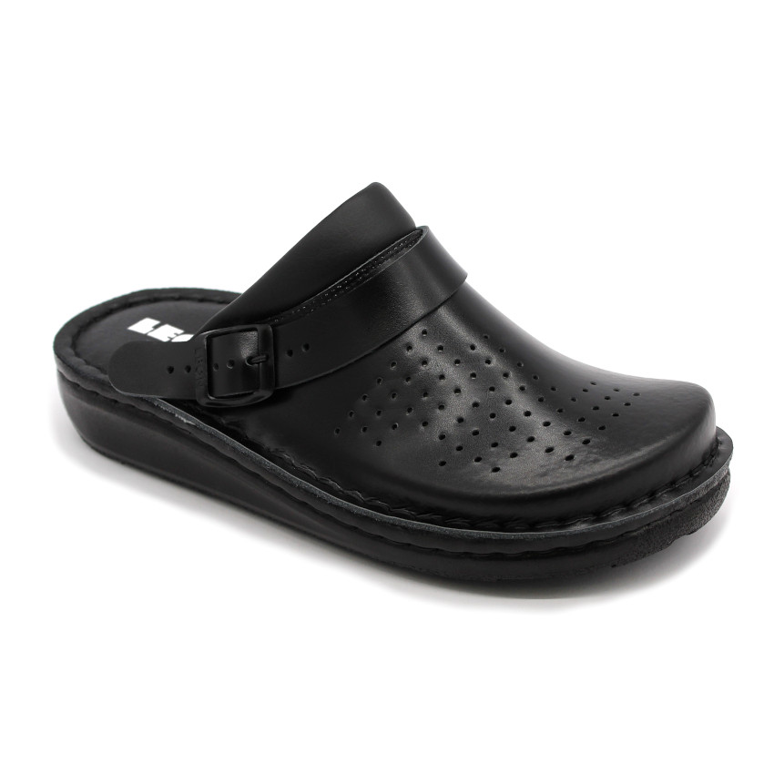 Női bőr klumpa, műanyag csúszásgátlós talppal. A felsőrész bemeneti nyílásánál, szivacsos szegő található, a komfortosabb érzetért. A szíj hátrahúzható a sarokhoz, így szandálnak is használható. A talpbetét puha, zselés bőr. Ez a modell szélesebb illetve magasabb lábfejjel rendelkező hölgyeknek ajánlott mindennapos utcai használatra, otthonra vagy munkahelyre ( több órás, szaladgálós munka alatt sem fárad el a láb ). Ez a termék rendelkezik munkavédelmi bevizsgálással.