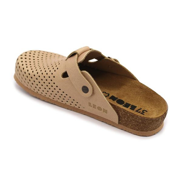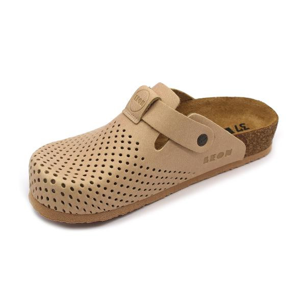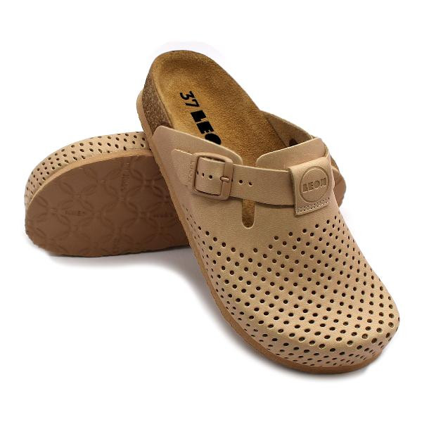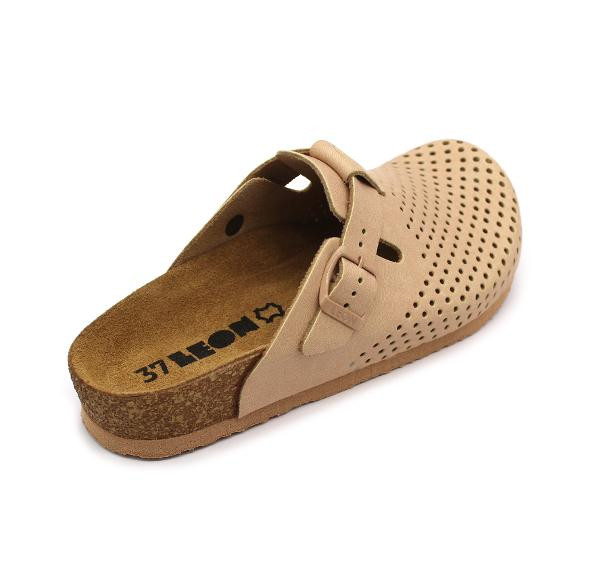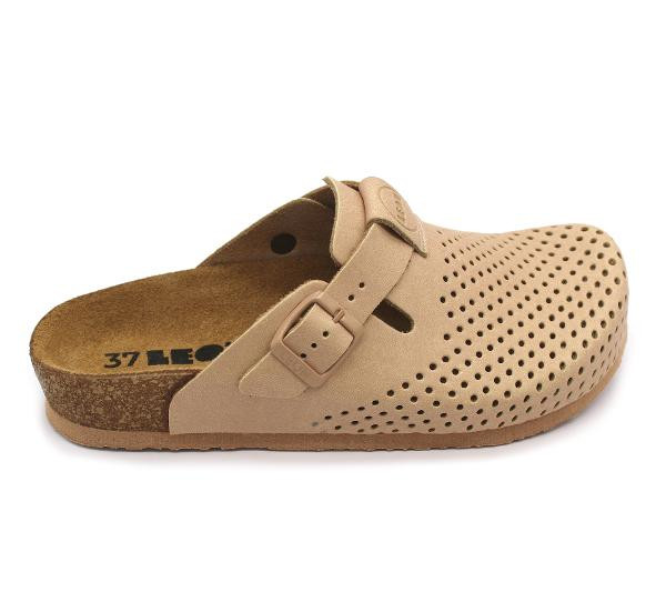 Női bőr klumpa, oldalt csat található, amellyel szabályozni lehet a bőséget. A talp anatómiai kialakítású parafa, puha velúrbőr talpbetéttel és csúszásmentes habszivacs alsó résszel. Ajánlott minden napos otthoni vagy utcai használatra, könnyű nyári sétára ( több órás gyaloglás után sem fárad el a láb ).
