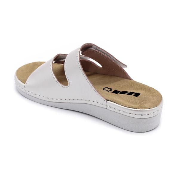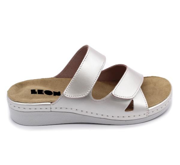 Dekoratív női nappabőr ( nagyon puha felsőrész ) papucs, műanyag csúszásmentes talppal. A felsőrész bősége tépőzárral szabályozható. Az anatómiai kialakítású, puha bőr talpbetét kivehető, így bármikor tisztítható és cserélhető. Ajánlott: mindennapos utcai használatra és otthonra.
